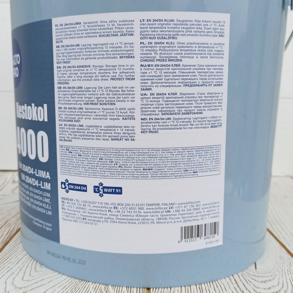 Клей ПВА класса D4 для сращивания древесины и склеивания ламелей Kestokol D 4000 Киилто ПРО