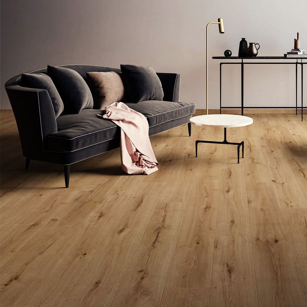 То есть Вы можете использовать полы коллекции Traditions от входной двери и по всей квартире, включая кухню, ванную комнату и санузлы. Вам не нужна плитка у входной двери, Вам не нужно совмещать разные материалы, заливать стяжки в разных уровнях и использовать разные стыковочные планки и материалы.