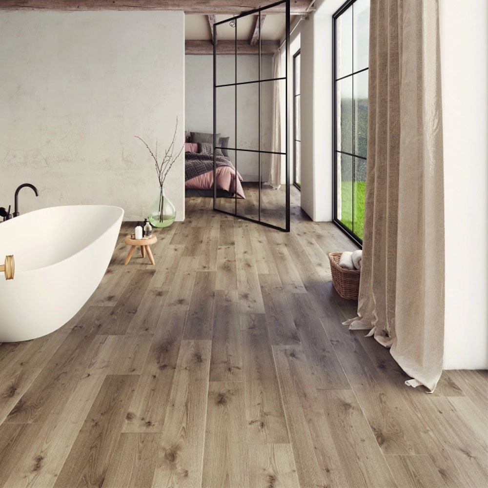 То есть Вы можете использовать полы коллекции Traditions от входной двери и по всей квартире, включая кухню, ванную комнату и санузлы. Вам не нужна плитка у входной двери, Вам не нужно совмещать разные материалы, заливать стяжки в разных уровнях и использовать разные стыковочные планки и материалы.