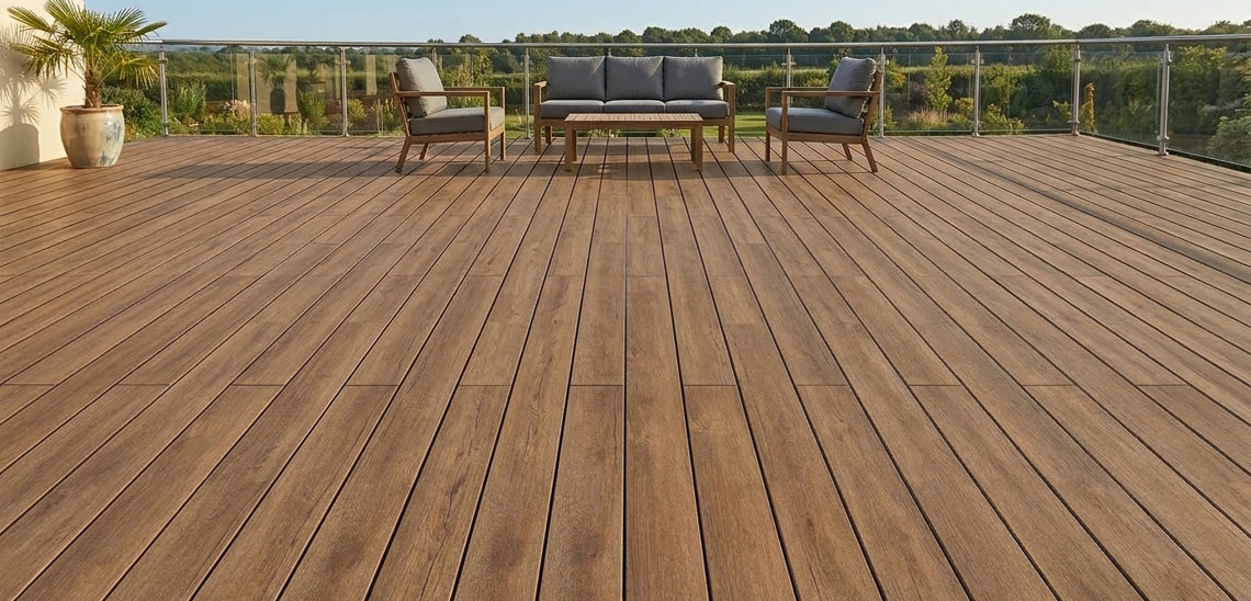 Renowood Exclusive Golden Oak — премиальная монолитная террасная доска с усиленной защитой Renowo..