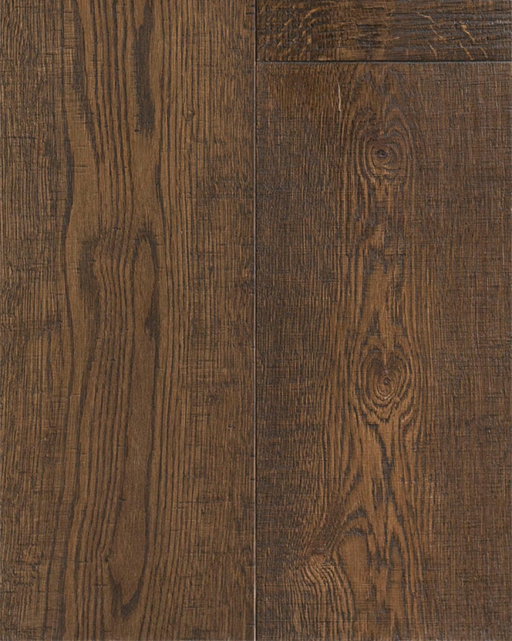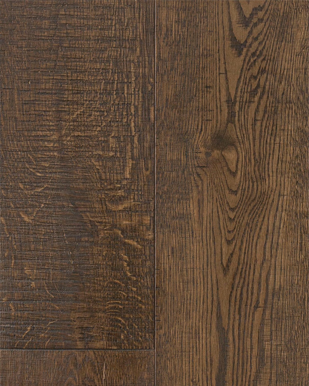 – Порода, структура поверхні, покриття: Дуб, браш, масло (опціонально лак). Поперечні розпили (сліди від пилки) на поверхні дошки.